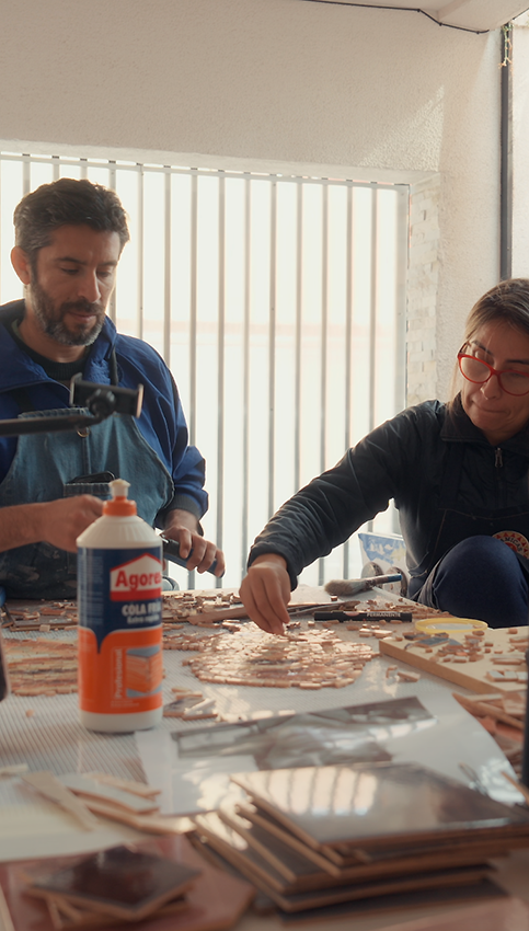 Lejos de operar como un simple retrato conmemorativo, el mural se configura como una superficie simbólica donde la fragmentación propia del mosaico dialoga con el lenguaje cinematográfico: piezas que, al articularse, construyen relato, tiempo e identidad. Desde esa relación entre materia e imagen, la obra propone una lectura del cine como práctica de arraigo, como forma de mirar el territorio y de inscribirlo en la memoria colectiva.