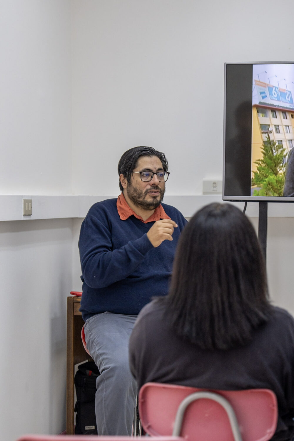 Antes de que el mural ocupara el muro, la obra ya había comenzado a desplegarse en la palabra. Frente al legado de la cineasta antofagastina Adriana Zuanic, propusimos a los estudiantes entrar a su universo no desde la biografía ni la imagen fija, sino desde una escritura que respirara como su cine: fragmentaria, luminosa, íntima. El ejercicio invitó a escribir desde un destello, una textura emocional o una imagen que no termina de irse, del mismo modo en que Zuanic miró Antofagasta: atendiendo a lo que persiste, a lo que insiste, a lo que vibra en los márgenes.
