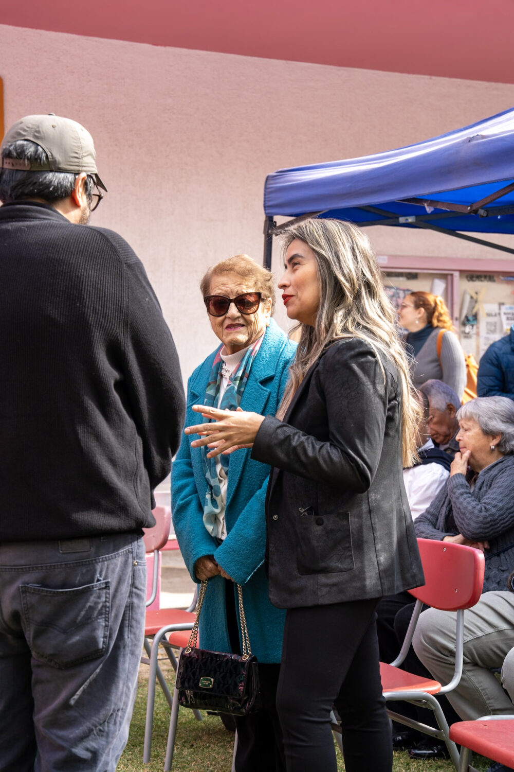 Lo que ocurre aquí no es solo una reunión, sino la apertura de un espacio sensible donde las voces que sostienen la vida cultural del lugar pueden escucharse entre sí. En este gesto, la artista instala la idea de que la obra no se agota en el muro; continúa en quienes la piensan, la discuten y la habitan. Cada intervención en la mesa actúa como una tesela simbólica que se suma al mosaico mayor del proyecto, recordando que la identidad del territorio se construye desde múltiples memorias que, al encontrarse, devuelven sentido y pertenencia.