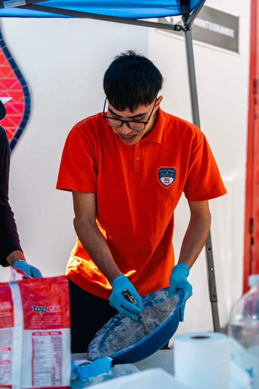 En este mural, la comunidad no aparece como espectadora, sino como fuerza constitutiva de la obra. La mediación realizada en la Escuela de Bomberos se transformó en un ejercicio donde cada mano, cada gesto y cada fragmento de cerámica participaron del mismo pulso: el de construir sentido en conjunto.