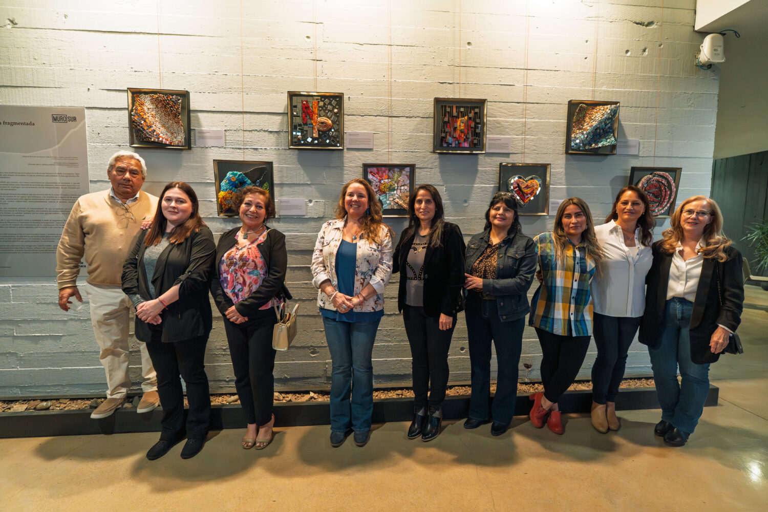 La exposición reunió obras de Ema Morelli Villalón, Bárbara Bickel Orellana, Jacqueline Granic Romero, Sylvia Morales Lancellotti, Mónica Jorquera Cox, Pamela González Rehbein, María Angélica Saavedra Espejo y Lisel Allard Moya, quienes desarrollaron propuestas que conectan biografía, territorio y creación artística. En sus trabajos, el mosaico se presentó como una cartografía sensible donde cada fragmento porta una historia y cada ensamblaje abre nuevas lecturas.