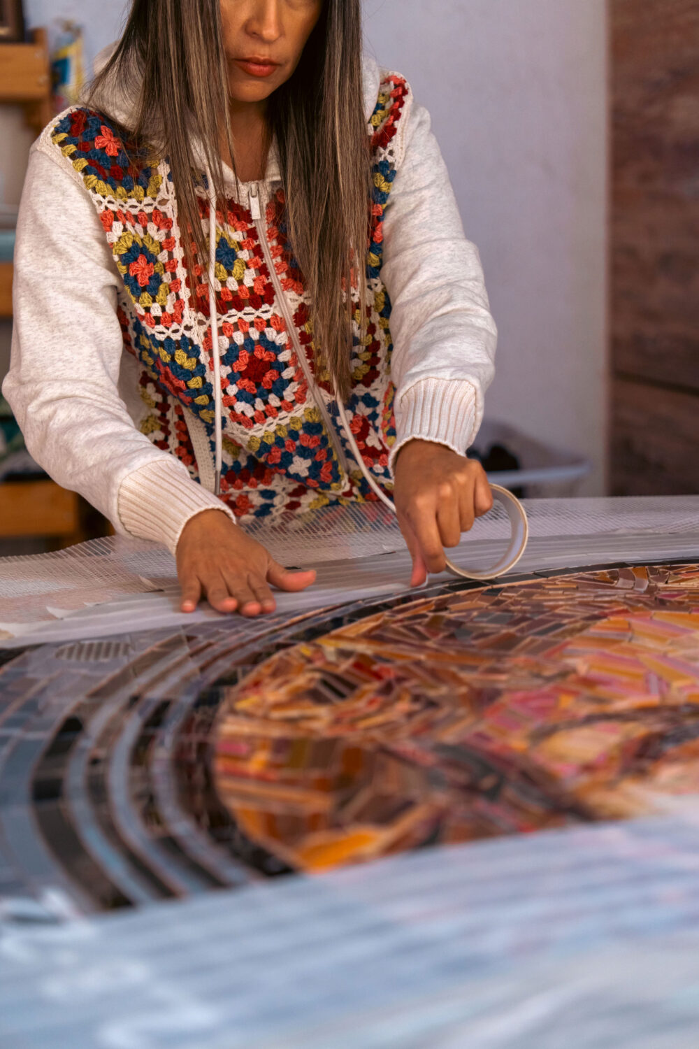 Esta obra no busca imponer un relato cerrado ni fijar una imagen definitiva de Adriana Zuanic. Muy por el contrario, lo que aquí se ofrece es un campo abierto de resonancias, un eco de su presencia en quienes habitan, narran y transforman este territorio. El mosaico no monumentaliza, convoca. No clausura, abre. No representa, sugiere, evoca, mantiene el hilo vivo de una memoria que se niega a desaparecer.